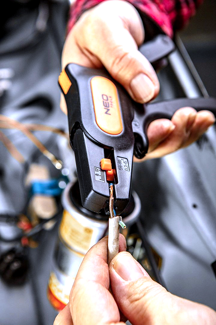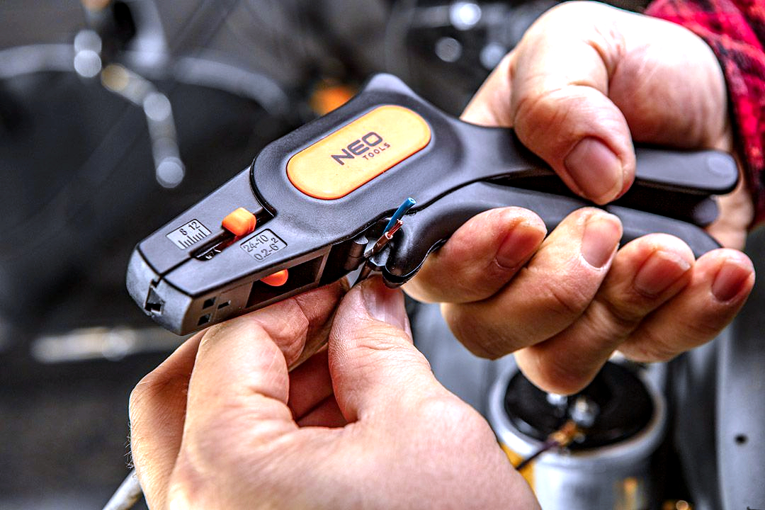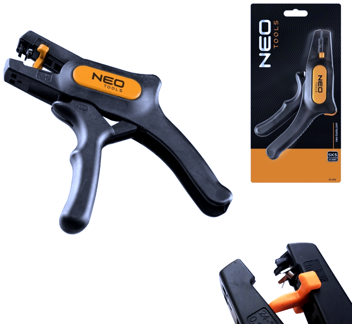 📦 Automatické odizolovacie kliešte NEO Tools 01-519 s rezačkou drôtu a nastaviteľnou dĺžkou.