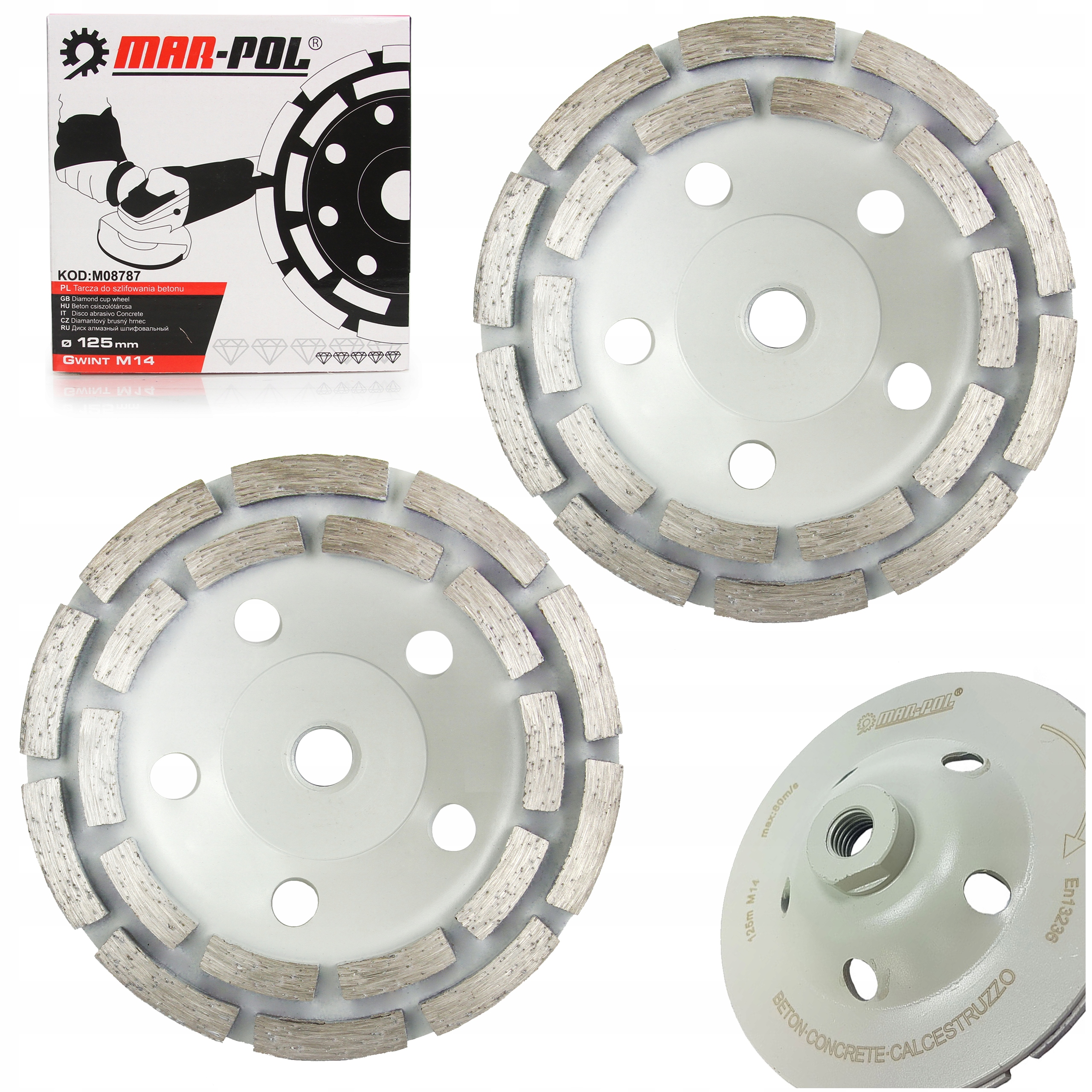 Diamantový kotúč MAR-POL M08787 SEGMENT s priemerom 125 mm, závitom M14 a výškou segmentu 5 mm, určený na brúsenie a vyhladzovanie kameňa, betónu a ďalších materiálov.