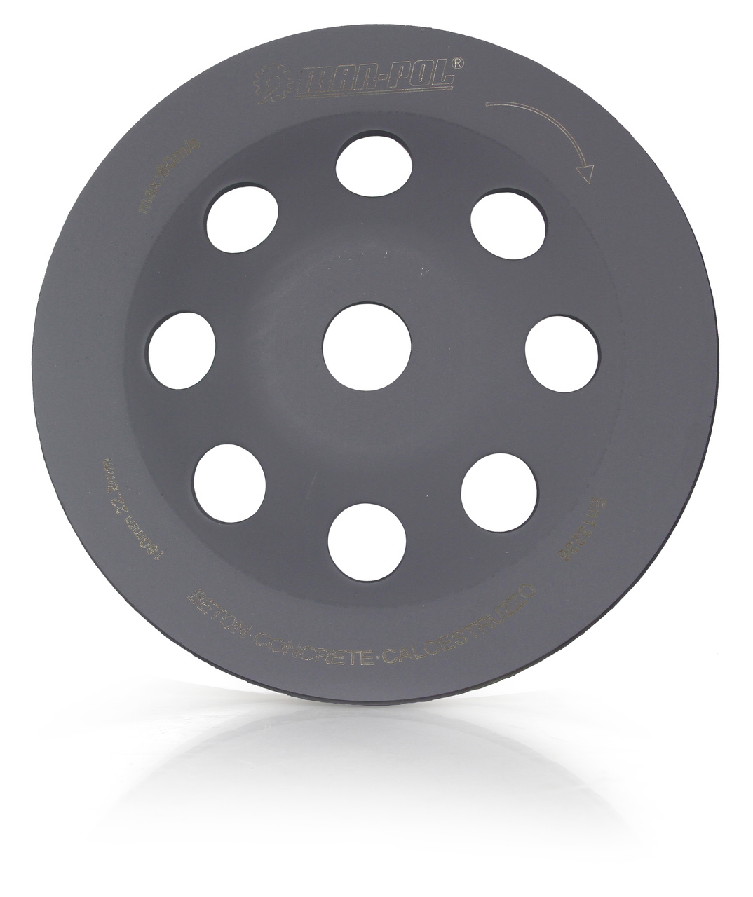 Diamantový brúsny kotúč MAR-POL M08786 TURBO, priemer 180 mm, vnútorný otvor 22.2 mm, výška diamantu 2 mm, určený na čistenie a brúsenie povrchov betónu, tehál a kameňa.