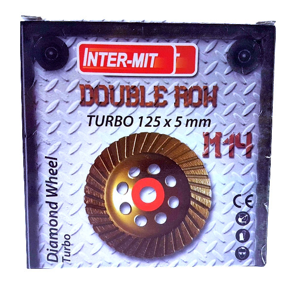 Brúsny diamantový kotúč MAR-POL M08788 TURBO2, priemer 125 mm, závit M14, výška diamantu 5 mm, určený na čistenie a brúsenie povrchov betónu, tehál a keramických dlaždíc.
