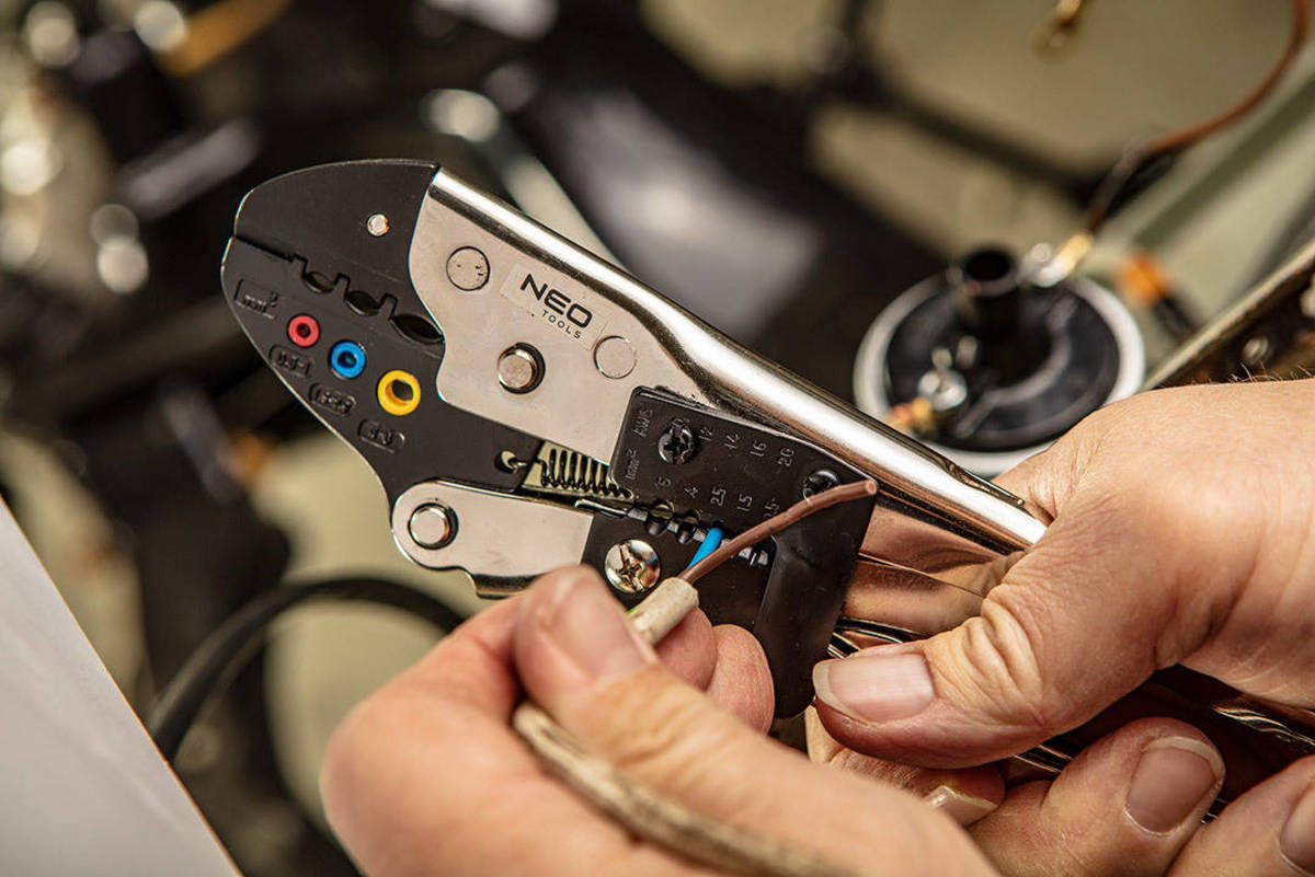 📦 Lisovacie kliešte NEO Tools 01-505 s vysoko kvalitnými TPR rukoväťami.