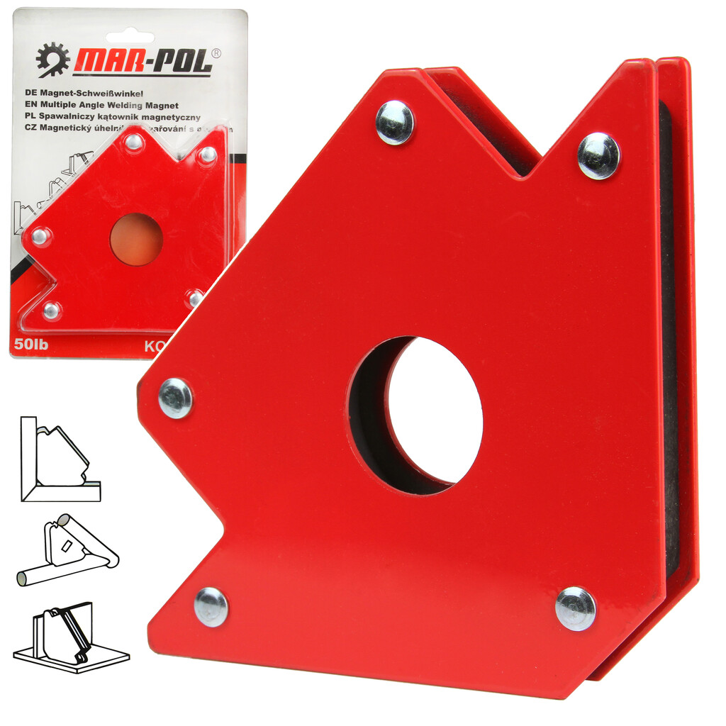 🔩 Magnetický zvárací uholník MAR-POL M79416 je nenahraditeľný pomocník pre každého zvárača či domáceho majstra! Tento výkonný nástroj umožňuje presné a pevné uchytenie kovových materiálov pod uhlami 45°, 90° a 135°, čím zjednodušuje a urýchľuje prácu pri zváraní, spájkovaní, brúsení či montáži.