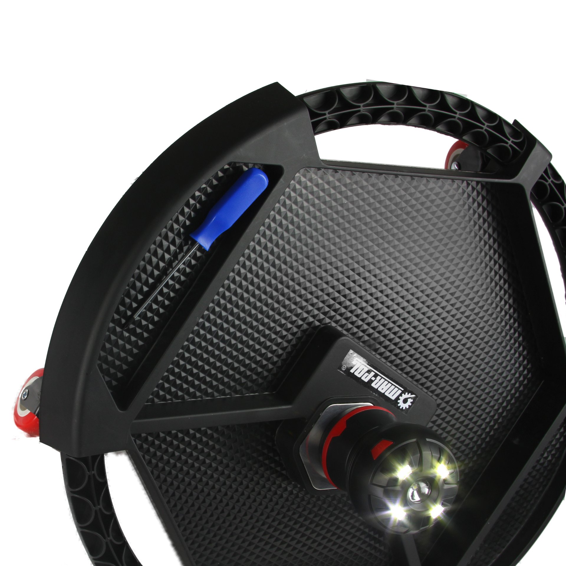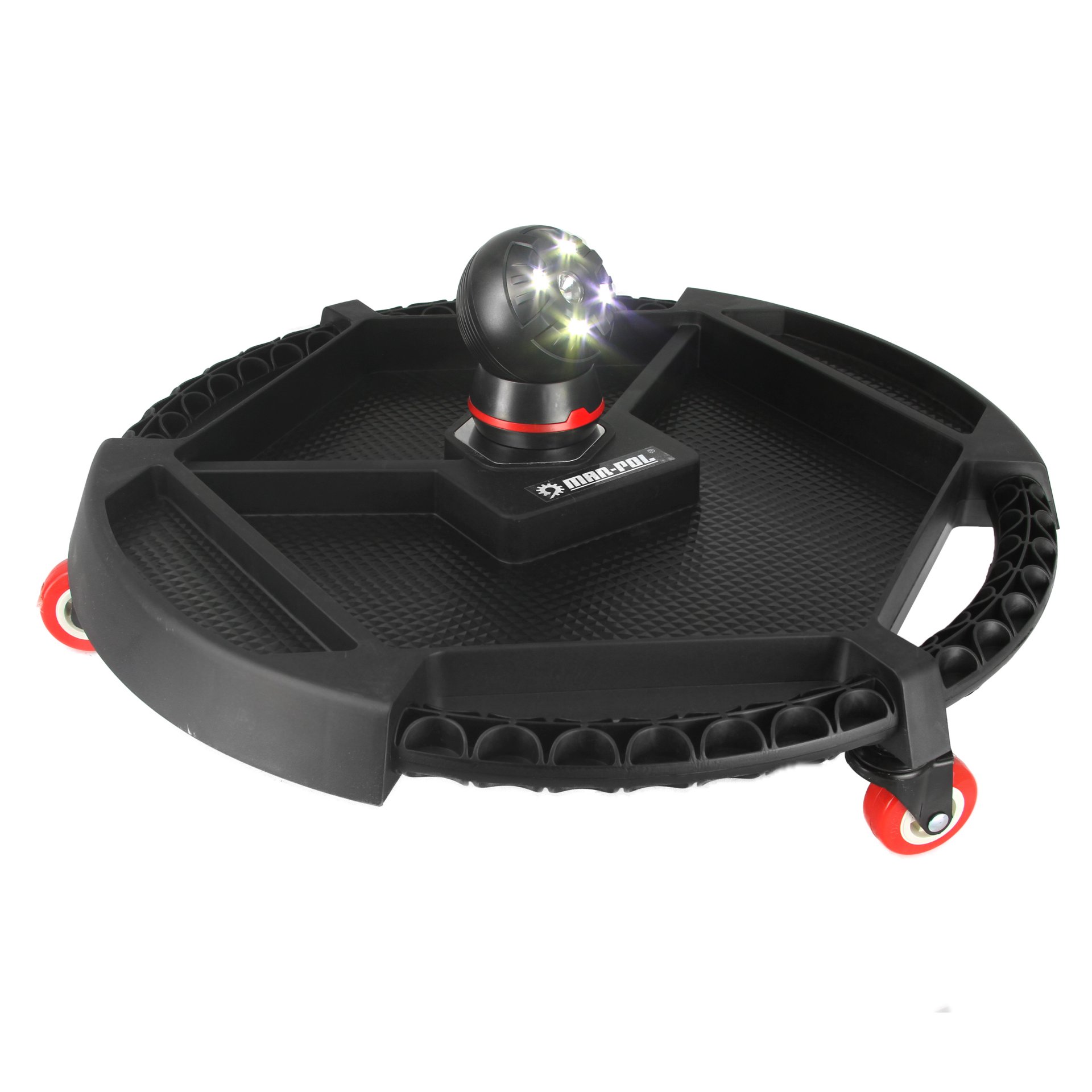 Pojazdná dielenská tácka na náradie s prenosným osvetlením na kolieskach MAR-POL M80199 – Praktická a mobilná dielenská tácka na náradie s prenosným osvetlením, ideálna pre prácu v tmavých a ťažko prístupných miestach. Umožňuje jednoduché usporiadanie náradia a príslušenstva pri práci pod vozidlom alebo na staveniskách.