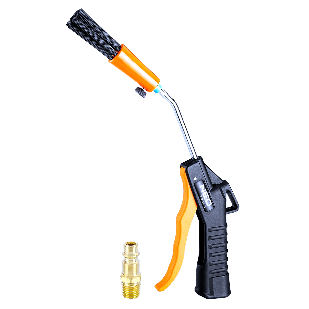 Pneumatická pištoľ s kefkou na ofukovanie NEO Tools 14-036 – Profesionálna ofukovacia pištoľ určená na čistenie strojov, motorov a zariadení stlačeným vzduchom. Vybavená prídavnou kefkou pre dôkladnejšie odstránenie nečistôt a prachu. Maximálny tlak 10.5 bar, nízka hmotnosť 1.1 kg a štandardný ¼” konektor zaručujú jednoduché použitie a vysoký komfort práce.