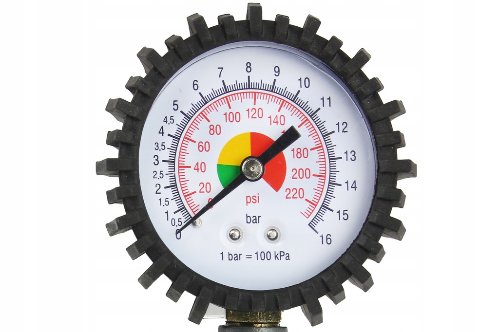 ✅ Presná nafukovacia pištoľ s rozsahom 0 – 16 bar (0 – 220 PSI) – Pre presné meranie a hustenie.