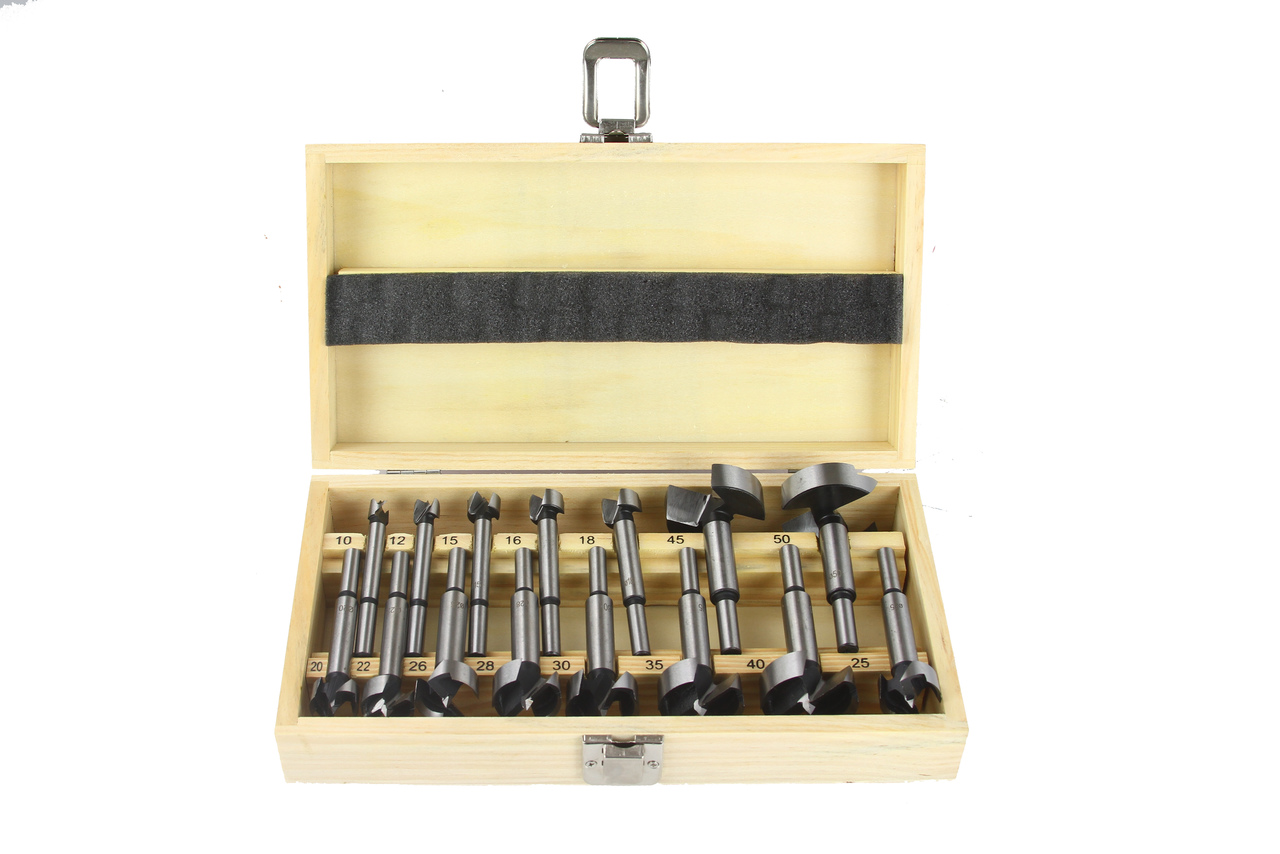 Súprava je uložená v praktickom drevenom kufríku pre jednoduché a pohodlné uskladnenie. Vrtáky sú vyrobené z vysoko kvalitnej ocele, s valcovou stopkou, kompatibilné so všetkými typmi vŕtačiek.