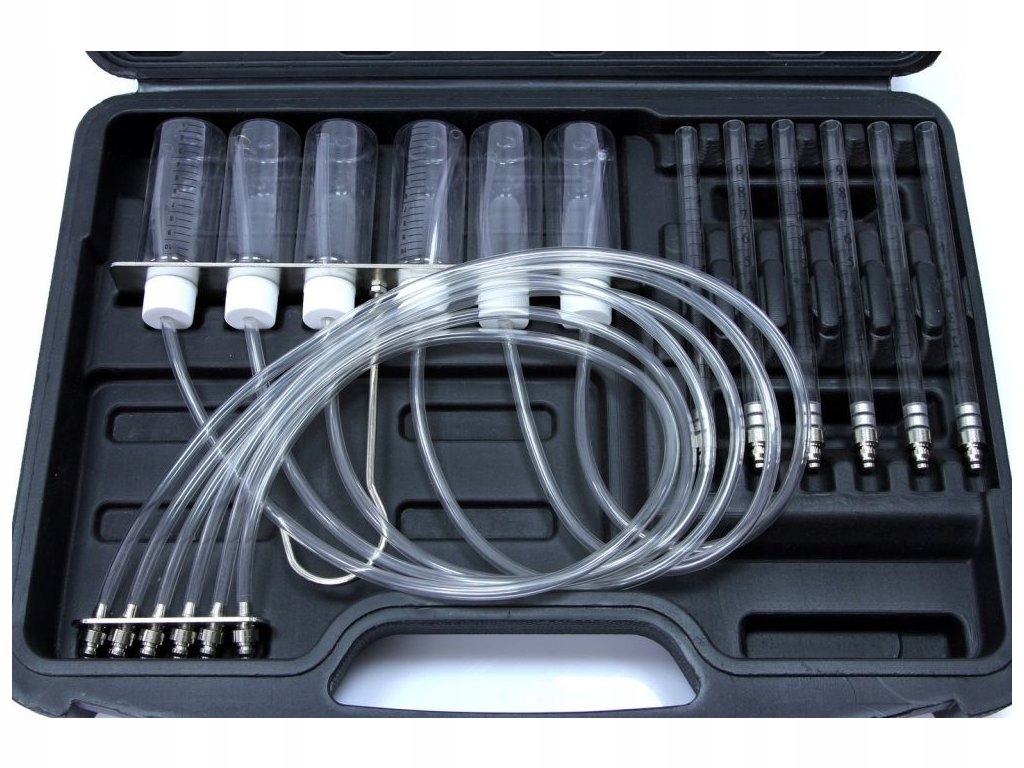 • 6 ks veľkých odmerných valcov s hadicami a koncovkami pre vstrekovače Bosch