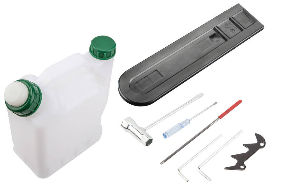 Píla je vybavená 18" (458 mm) vodidlom a reťazou OREGON, čo zabezpečuje presné a čisté rezy. Integrovaný systém automatického mazania reťaze predlžuje životnosť a zvyšuje efektivitu rezných operácií. Navyše, spotrebu oleja je možné manuálne nastaviť, čím si užívateľ môže prispôsobiť mazanie podľa podmienok a materiálu.