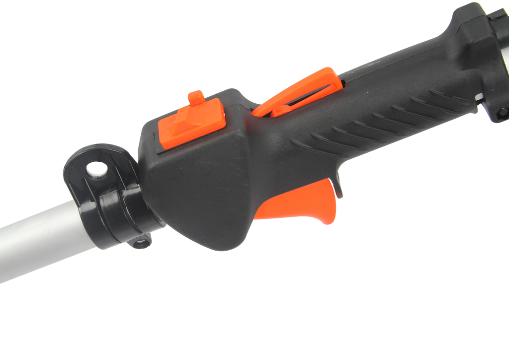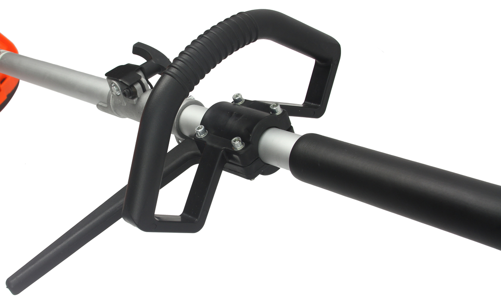 Krovinorez je vybavený odstredivou spojkou, ktorá bráni otáčaniu hlavy pri voľnobehu, a špeciálnym krytom uhlového kolesa, ktorý zabraňuje zamotaniu trávy a nečistôt. Ergonomická rukoväť s možnosťou otáčania umožňuje komfortné a presné ovládanie aj v ťažko dostupných miestach.