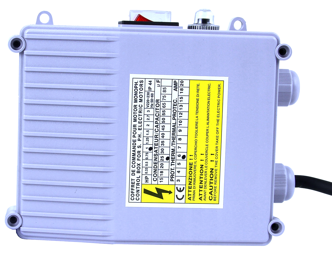✅ Riadiaca skrinka s nadprúdovým spínačom – Pre jednoduchú obsluhu a ochranu proti prepätiu.
