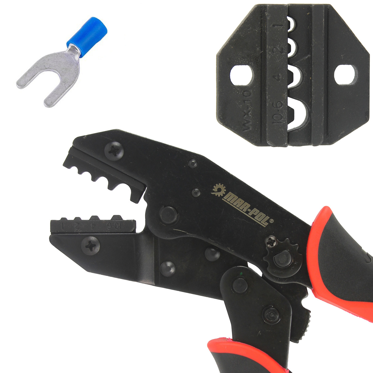 Profesionálne krimpovacie kliešte MAR-POL M49533 sú ideálnym nástrojom na krimpovanie rôznych typov konektorov – vidlicových, očkových a anténnych konektorov s káblami. Vhodné pre elektrotechnické a telekomunikačné práce, kde je potrebná presnosť a spoľahlivosť.