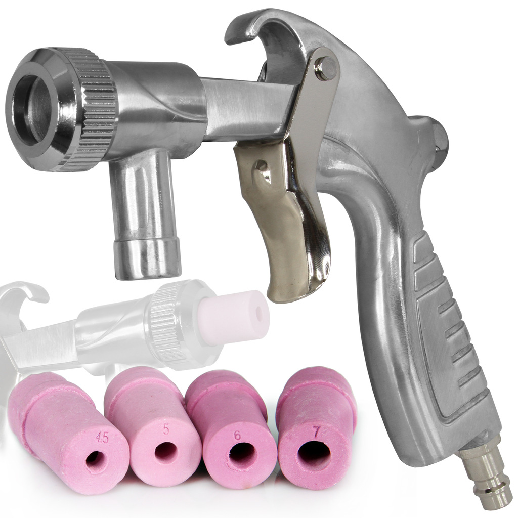 Profesionálna pieskovacia pištoľ určená na čistenie rôznych povrchov od hrdze, starých náterov, lakov a silných nečistôt. Vďaka vymeniteľným tryskám rôznych priemerov je vhodná na presné prispôsobenie tlaku a výkonu podľa potreby.