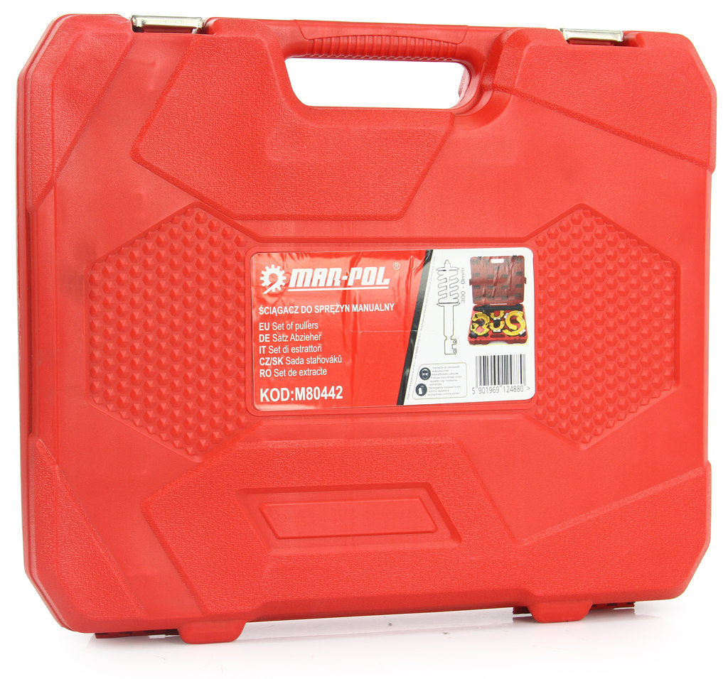 Profesionálny sťahovák pružín typu McPherson MAR-POL M80442 je ideálnym riešením pre bezpečné a efektívne stláčanie pružín v zavesení osobných a dodávkových vozidiel. Všetky prvky sady sú vyrobené z hrubostennej a vysoko odolnej ocele, ktorá zvláda aj extrémne zaťaženie.