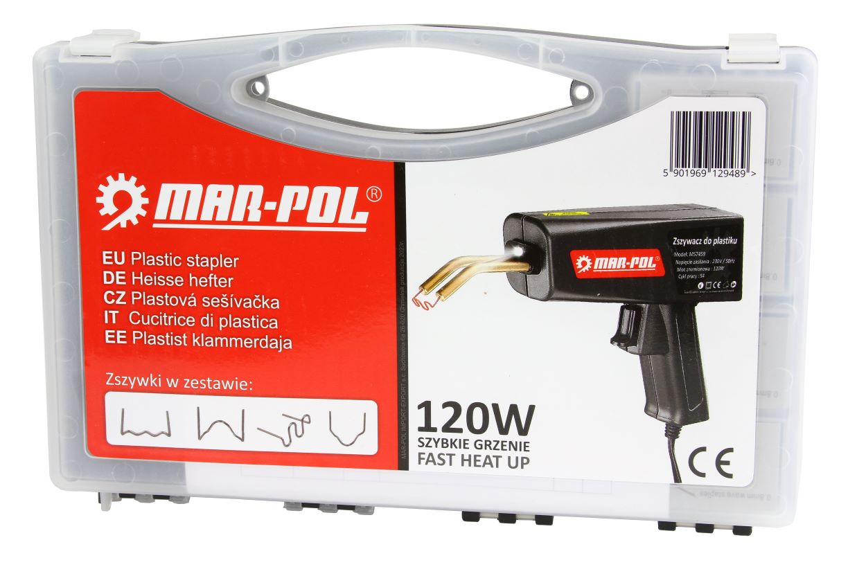 Zváračka plastov MAR-POL M57459 s výkonom 120W je určená na rýchlu a spoľahlivú opravu plastových prvkov, vrátane mechanicky namáhaných a vibrujúcich dielov. Prístroj je vybavený LED osvetlením, rezacím a modelovacím hrotom a ponúka 4 druhy sponiek pre univerzálne použitie. Vďaka rýchlemu zahrievaniu a pracovnej teplote až 750°C je ideálna pre autodielne, opravy nárazníkov, svetlometov a iných plastových komponentov.