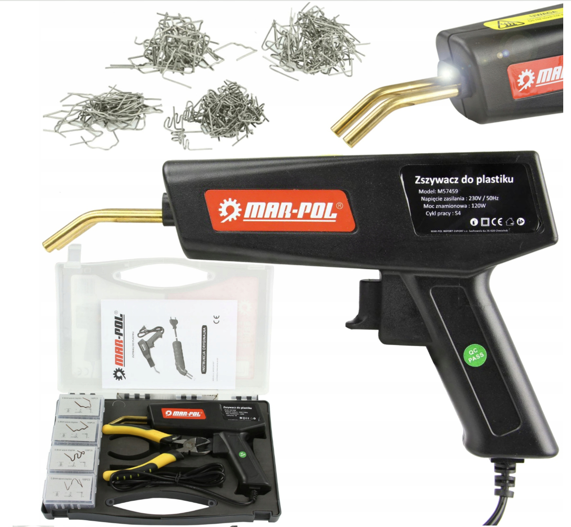 Zváračka plastov MAR-POL M57459 je všestranné zariadenie navrhnuté na opravu plastových prvkov pomocou termoplastického spojenia. Nahriate sponky sa jednoducho zapustia do materiálu, čím vytvoria pevné a odolné spojenie. Proces je vhodný pre opravu plastov po zváraní alebo lepení, najmä v prípadoch, kde je spoj vystavený mechanickej záťaži.