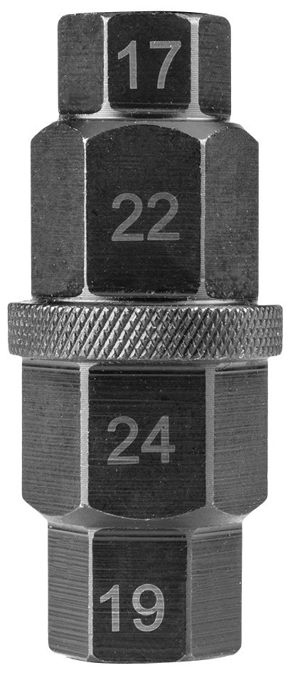 Vďaka šiestim rôznym veľkostiam vnútorných šesťhranov (12, 14, 17, 19, 22 a 24 mm) je tento nástroj kompatibilný s väčšinou motocyklových modelov. Je vyrobený z vysoko kvalitnej ocele, čo zaručuje jeho pevnosť a dlhú životnosť aj pri intenzívnom používaní.