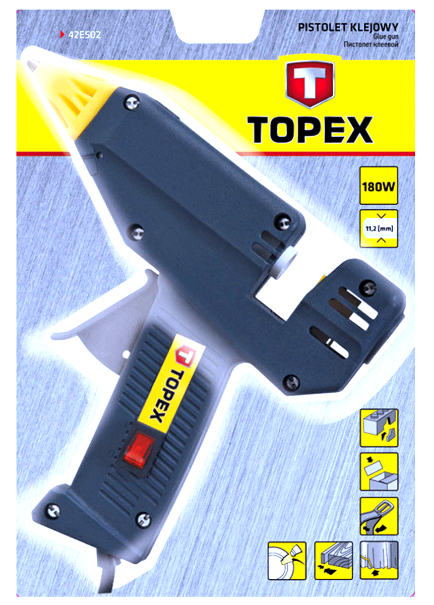 • Výkonná tavná lepiaca pištoľ 11 mm, 180 W – TOPEX 42E502